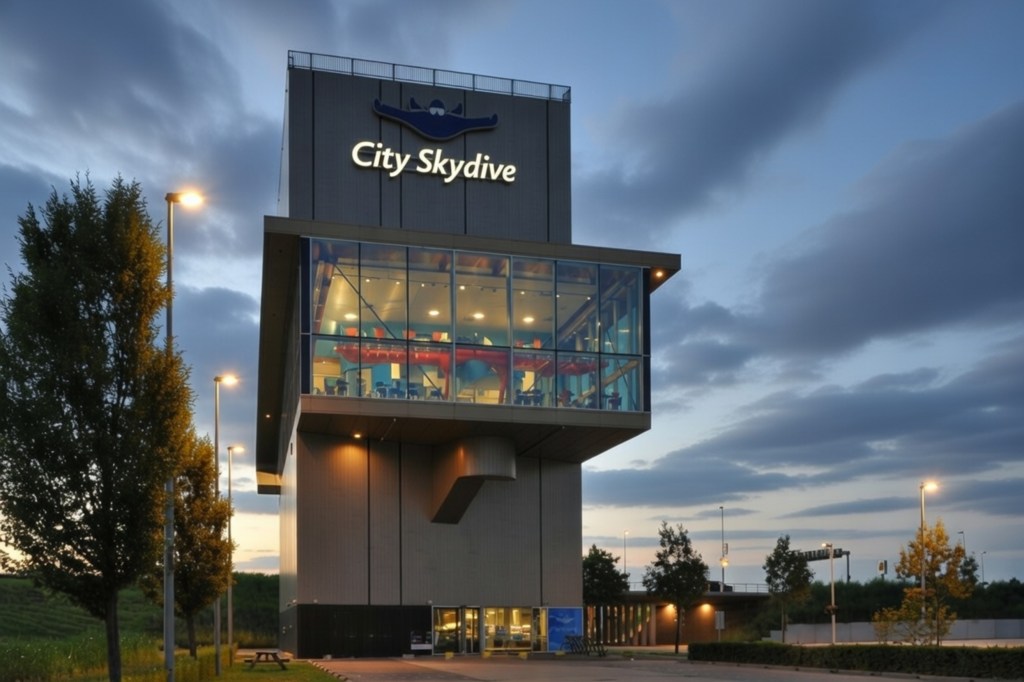 City Skydive is een iconisch en technisch hoogwaardig gebouw aan de A2 bij Utrecht, ontworpen rondom twee verticale windtunnels – uniek als eerste faciliteit wereldwijd met een dubbele tunnelconfiguratie. Architectonisch is het een sculpturale landmark, waarin transparantie, dynamiek en aerodynamica centraal staan.