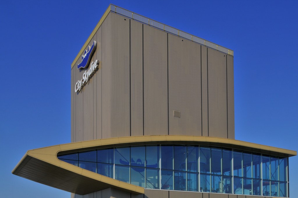 City Skydive is een iconisch en technisch hoogwaardig gebouw aan de A2 bij Utrecht, ontworpen rondom twee verticale windtunnels – uniek als eerste faciliteit wereldwijd met een dubbele tunnelconfiguratie. Architectonisch is het een sculpturale landmark, waarin transparantie, dynamiek en aerodynamica centraal staan.