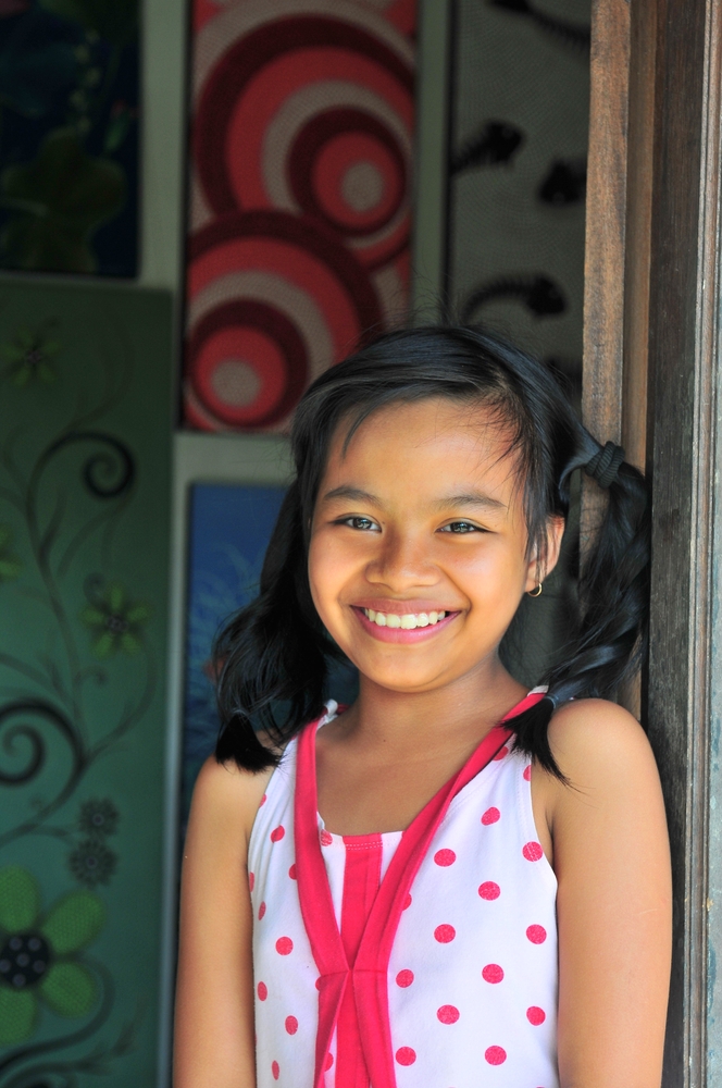 Meisje met knipoog in Vientiane Laos