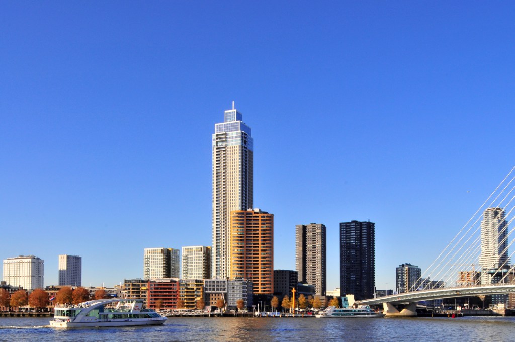 De Zalmhaventoren 1, ontworpen door architect Diederik Dam, is een imposant symbool van moderne stadsarchitectuur in Rotterdam. Met zijn 215 meter hoogte is het de hoogste woontoren van de stad en een markant onderdeel van de skyline. Het ontwerp combineert strak modernisme met verfijnde details en biedt zowel residentiële als commerciële ruimte. Gelegen aan de Nieuwe Maas, is de toren niet alleen een functioneel gebouw, maar ook een architectonisch statement dat de dynamische ontwikkeling van Rotterdam weerspiegelt. De Zalmhaventoren 1 is een perfect voorbeeld van innovatieve architectuur die de stad zowel visueel verrijkt als praktisch verbetert.
